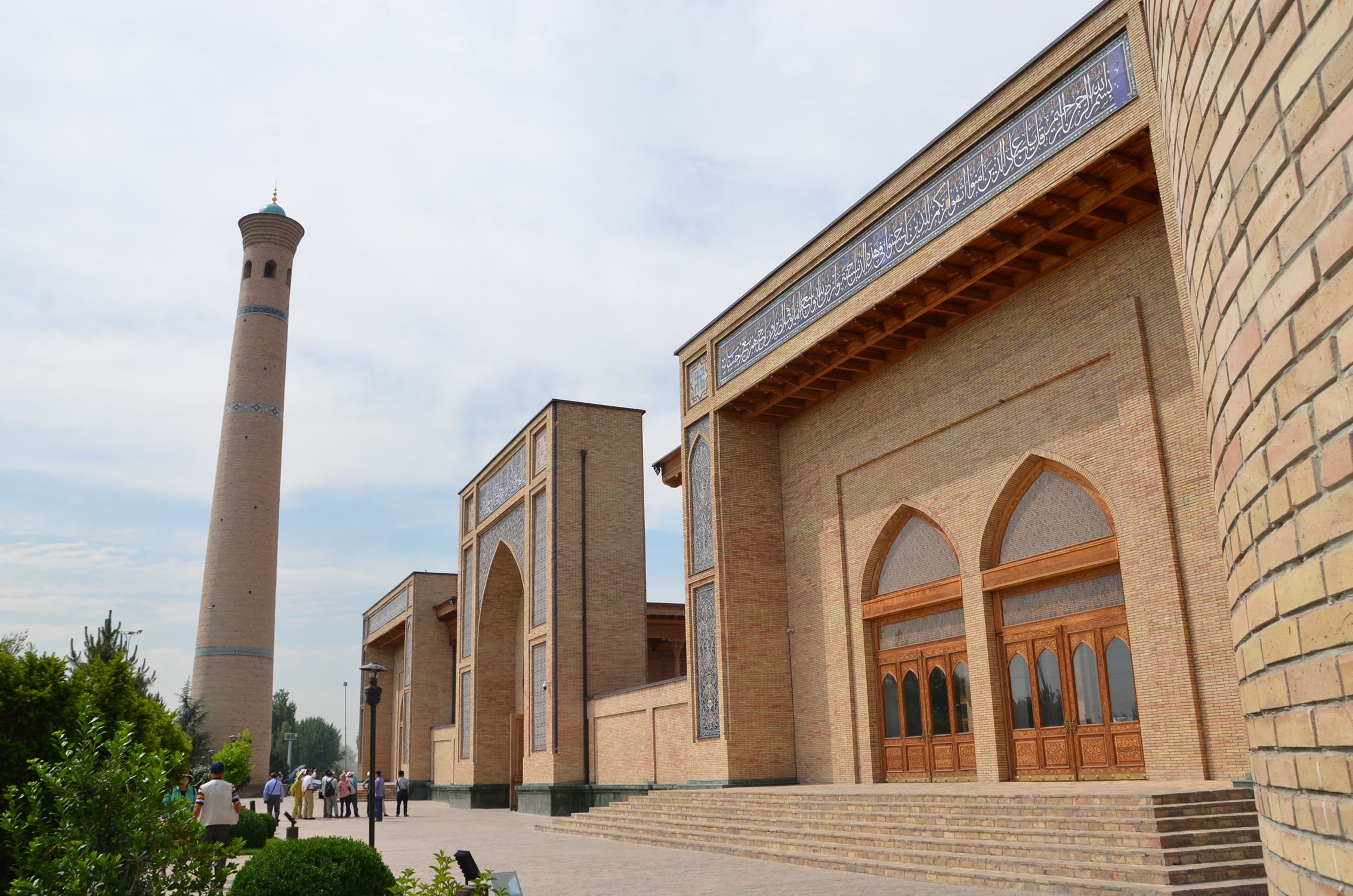 【聖伊瑪目伊斯蘭宗教建築群│Khazrat-Imam Complex:巴拉克汗伊斯蘭學院、星期五清真寺】位於北邊的 Khast Imom廣場是塔什干的伊斯蘭宗教中心。它是由Barak-Khan-Madrassah經學院、the Tillya-Sheik-Mosque星期五清真寺、Mausoleum of KaffalShoshi所組成。還有著名的 Moyie Mubarek Library圖書博物館,館內收藏了7世紀的奧斯曼古蘭經,由先知穆罕穆德的女婿奧斯曼所複製,相傳這是世界上最古老的古蘭經。