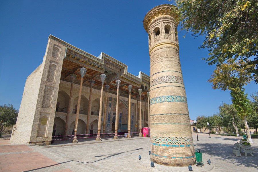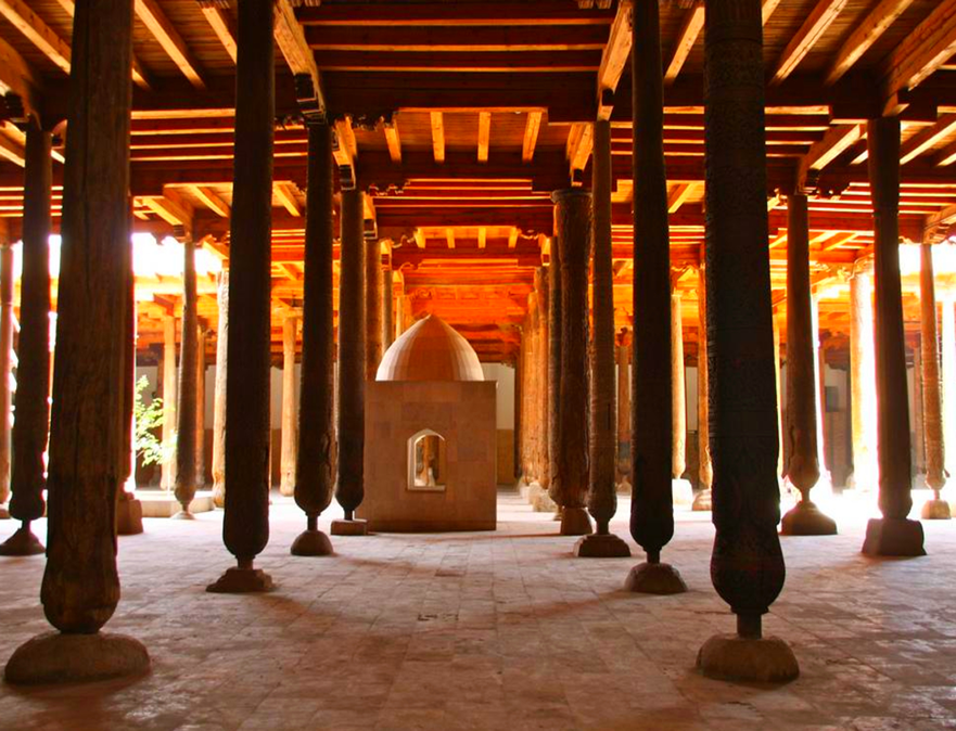 【禮拜五清真寺】中亞最古老的建築物之一,寺內有213根形態各異的木柱,造型獨特,每根皆高3.15公尺。