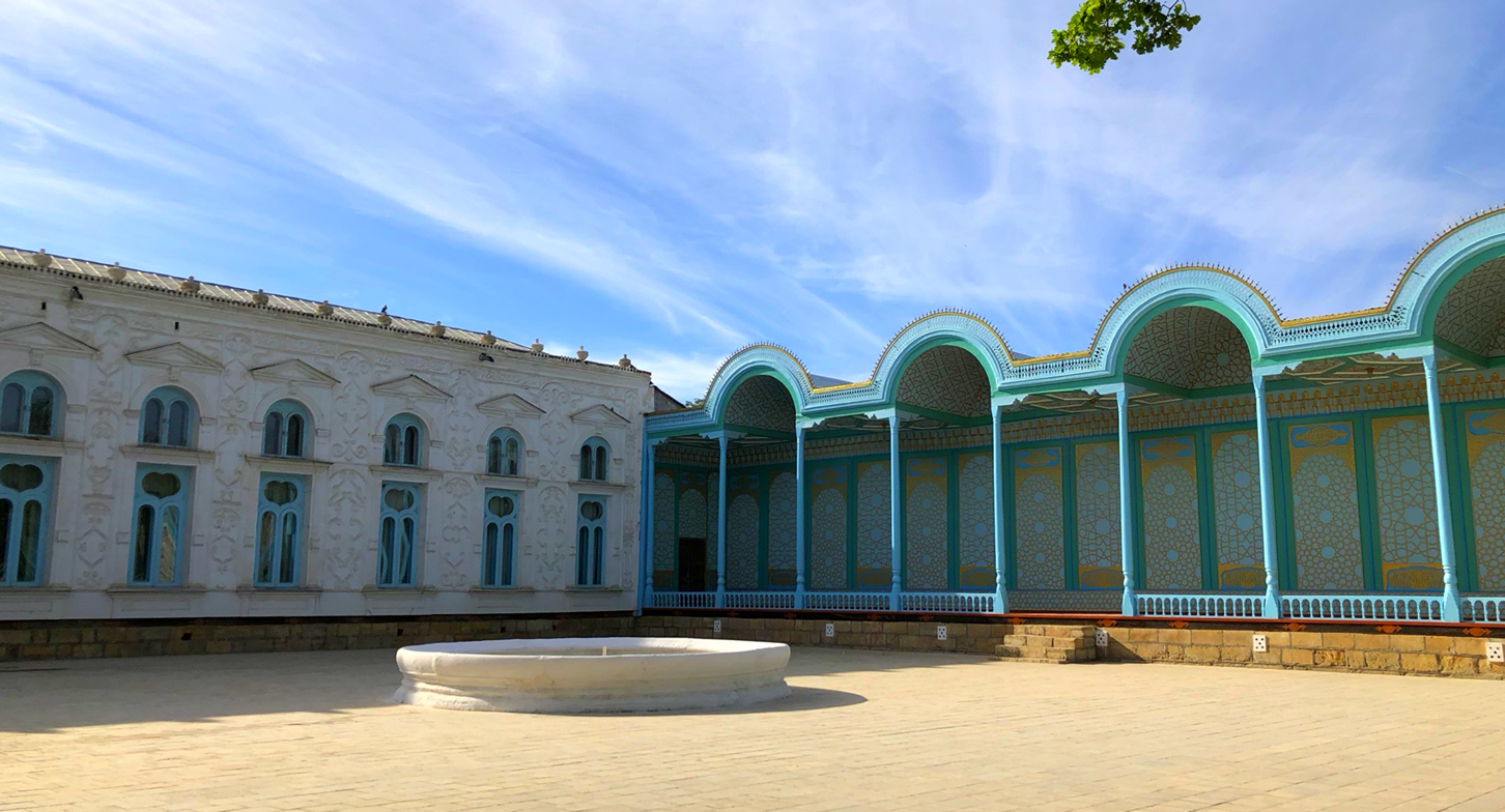 【穆罕默德拉肯汗神學院】以前是曾經熱鬧的宮殿廣場,也是執行死刑的地方。1873 年可汗拉希姆向俄國投降,此經學院是以他為名。裡面有一部分展示著這位可汗與他兒子的生活展示品。