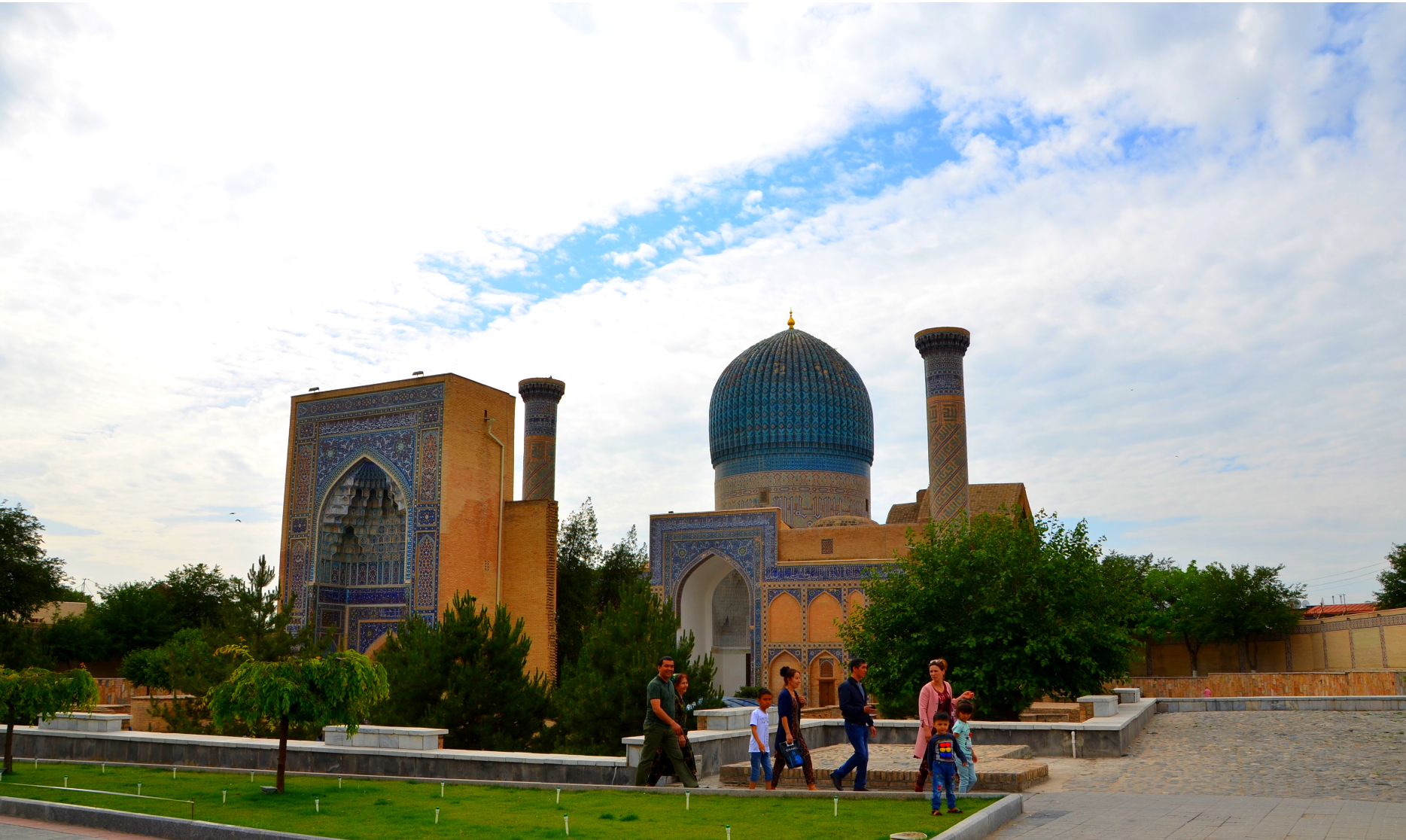 寺,也是帖木兒帝國建築上的瑰寶,僅大門的高度就高達35公尺。可惜原本的建築在19世紀末的一場地震中損毀,目前僅存於原址修復後的清真寺。而令人驚奇的是,聖經中的先知(但以理)陵寢也在撒馬爾罕。