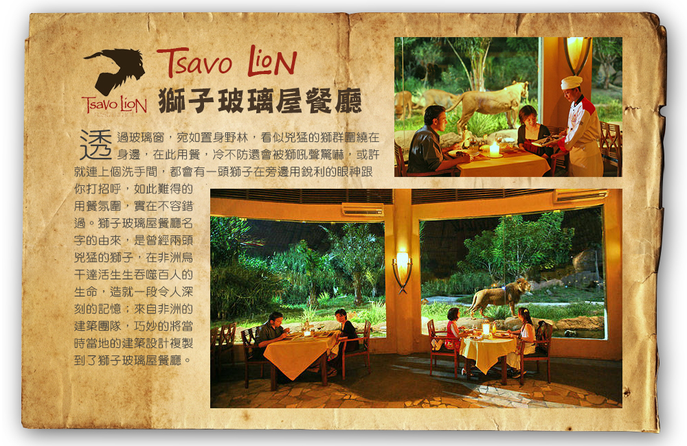 與獅共進早餐/動物表演/免費彩繪車野生動物導覽→大象主題公園下午茶(欣賞大象表演~騎大象夜遊園區)