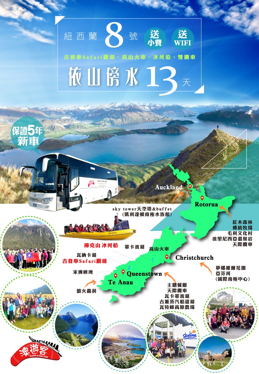 當您準備好一切,期待著您精心規劃的旅遊假期時,是不是深怕遇到不專業的領隊及導遊,而使您敗興而歸呢?身為紐澳旅遊專賣的我們,除了有專業團隊精心規劃行程中的每個細節,更著重領隊群的專業養成,不僅讓每位旅客安心、放心,最重要的是帶給您一趟身心的洗滌及永生難忘的美好回憶。